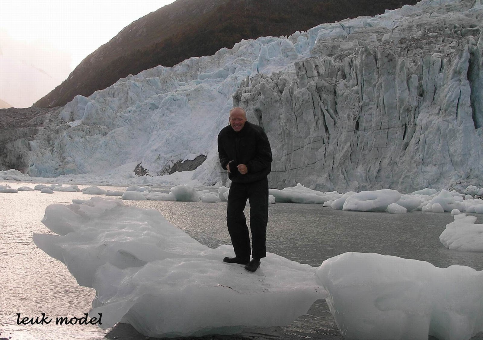We kijken, fotograferen en bewonderen. Overal klinkt gekraak, gegrom en gedonder. Dan valt er met veel geweld een stuk van de gletsjer naar beneden. Grote ijswolken stuiven op en vervolgens keert de rust terug, dan opnieuw onweer en gekraak en de hoeveelheid ijsbrokjes neemt weer toe. Het geluid komt altijd een fractie later dan dat het ijs valt, dus het is altijd even zoeken naar de juiste plek. De wereld is hier oer en puur. We zetten de bijboot overboord en ik roei een stukje naar deze muur van ijs. Tussen al dat ijs roeit het voor geen meter, steeds loopt de boot vast op een schots en als ik in de buurt kom van de morene is het dan ook genoeg. Nog wat foto's en dan weer terug tussen de ijsschotsen door … pff, maar wel uniek.